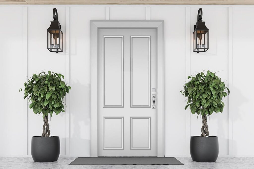 If you favor modern style, you’re likely considering black or gray for your entry door. These colors add sleek sophistication to your front porch, elevating your entry door and complementing most siding options. Black and gray work well in particular with minimalist looks, though you can always add your own style and dress up your front porch as you choose.